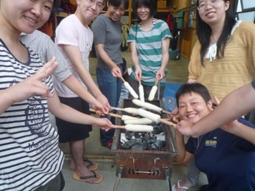AIUとは秋田県にある国際教養大学のこと。今日明日は野外授業で当センターに泊まってシーカヤックとスノーケリングを行っています。 夕食はきりたんぽづくり。あいにくの雨で、場所を倉庫に移し、NPO法人あきた海辺の自然学校のスタッフ指導のもと、楽…